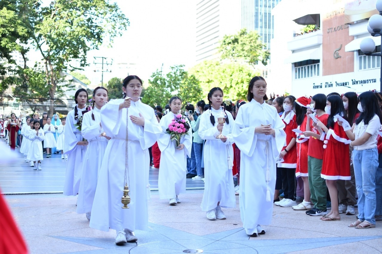 วันอาทิตย์ที่ 24 ธันวาคม พ.ศ. 2566 พิธีบูชาขอบพระคุณสมโภชพระคริสตสมภพและพิธีรับศีลมหาสนิทครั้งแรกของนักเรียนชั้นประถมศึกษาปีที่ 2 และเกรด 2